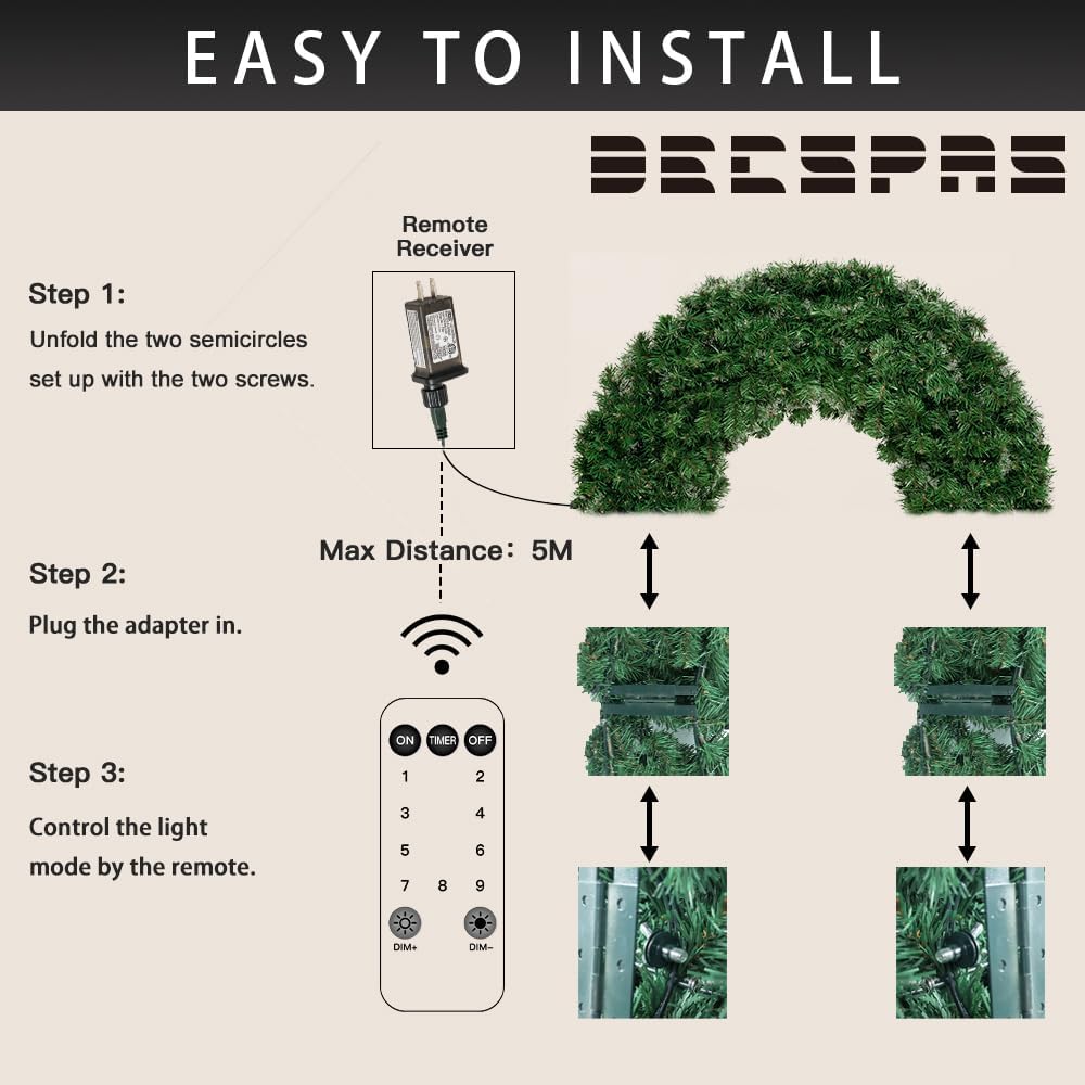 - ☃Easy to Install - Come with instruction. Step1: connect the half wreaths together with the provided 2 screws. Step2: connect the light chain up. Step3: connect the wire end tip to the adapter and screw the black nut. You can get a perfect Christmas wreath art easily.