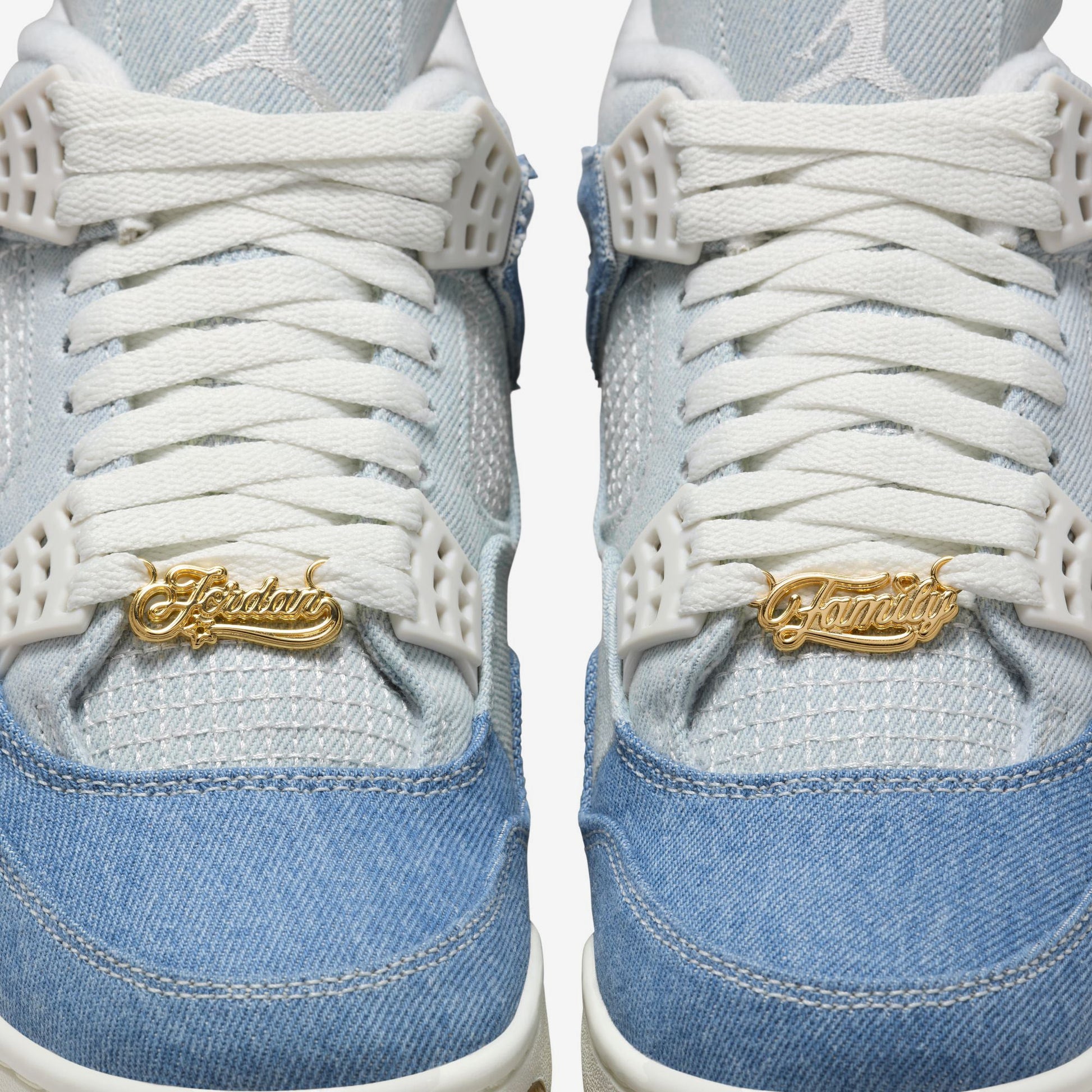 Coated in dual-tone denim throughout the upper, this iteration of the AJ4 combines light-washed blue tones on the midfoot, collar, and heel counter with darker indigo denim accents on the mudguard, toe, and eyestay overlays. As always, signature Jumpman logos on the tongue label, heel counter, and outsole round off the classic design.